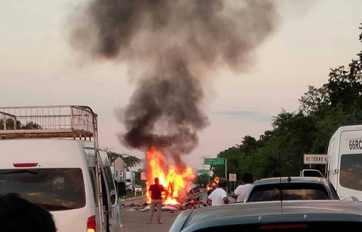 El choque entre ambos vehículos causó el incendio de ellos lo que dificultó las labores de auxilio.