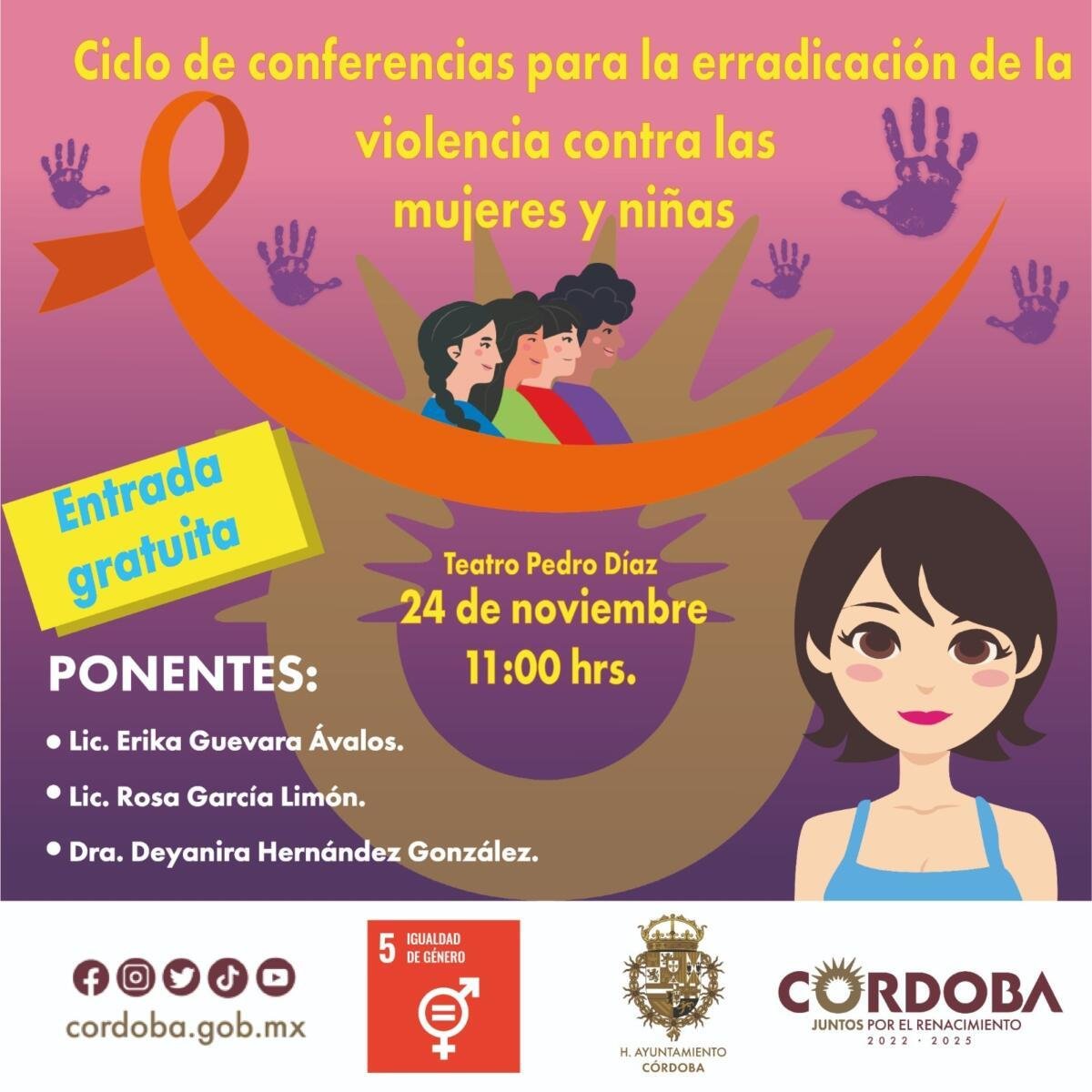 Córdoba, Ver., (23 de noviembre del 2023). – En marco a la conmemoración del “Día Internacional para la Erradicación de la Violencia contra las Mujeres”, el Ayuntamiento de Córdoba realizará diversas actividades con el objetivo de generar conciencia entre la población, con temas encaminados a la prevención, erradicación, y sanciones legales de la violencia contra mujeres y niñas del municipio.