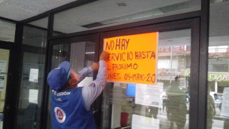 Ante el malestar de los cuenta habientes que se encontraban afuera de la sucursal de la avenida 3, personal de Protección Civil Municipal colocó un letrero para avisar que hasta el lunes se reanudaría el servicio.