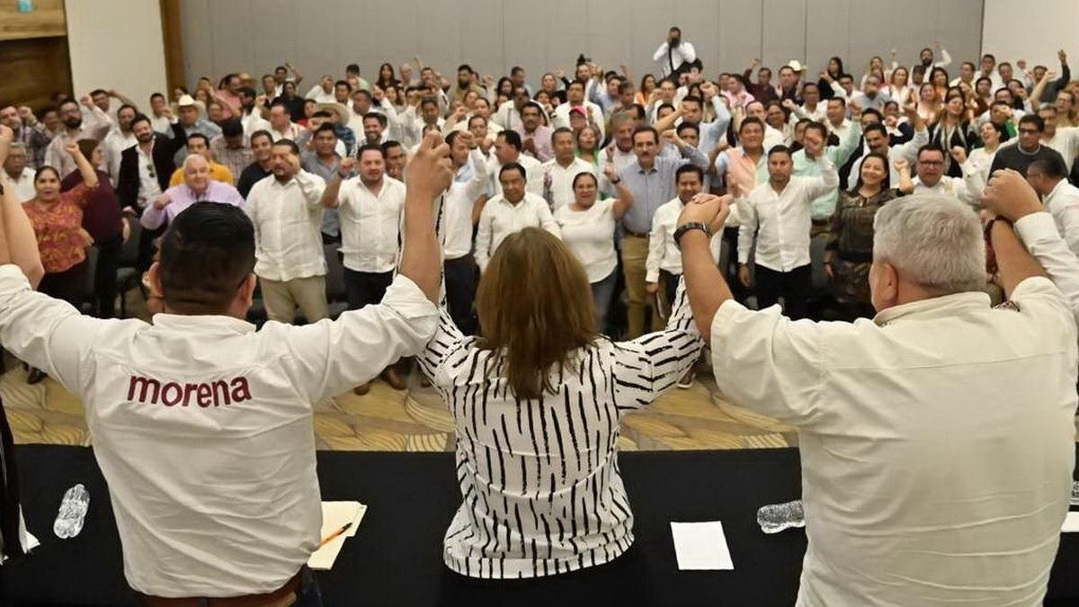 Esta tarde, 146 alcaldes, diputados federales y locales así como liderazgos de Movimiento Regeneración Nacional (Morena, PT, PVEM) cerraron filas a favor de Nahle García y de su llamado a la unidad y a caminar juntos dando por concluido el proceso interno de la elección de los Comités de Defensa de la Cuarta Transformación.