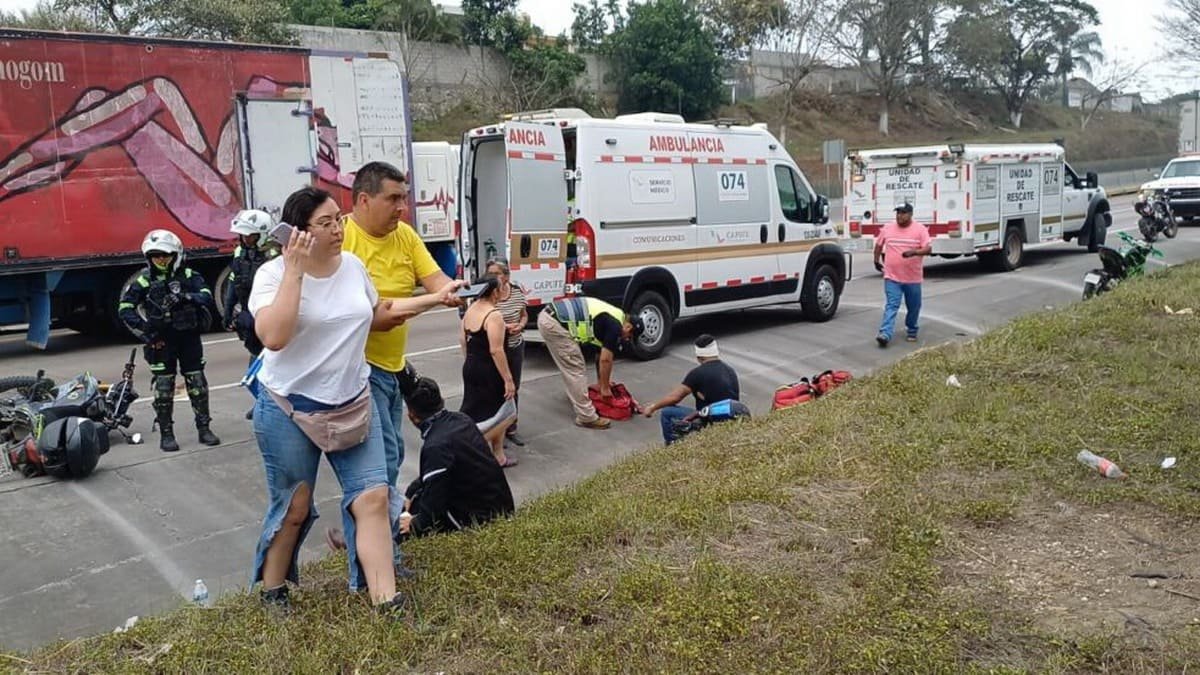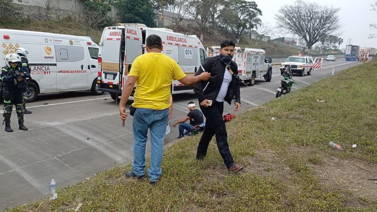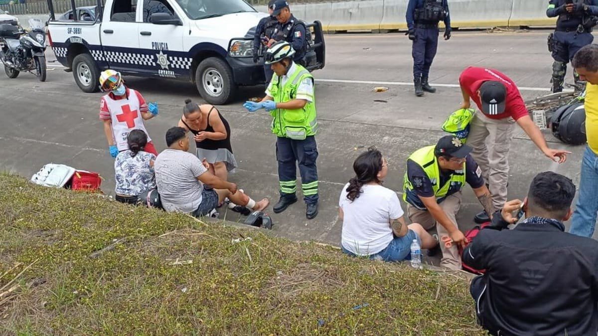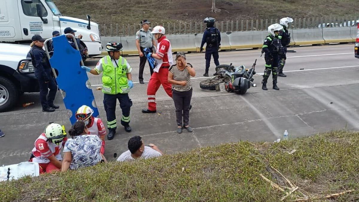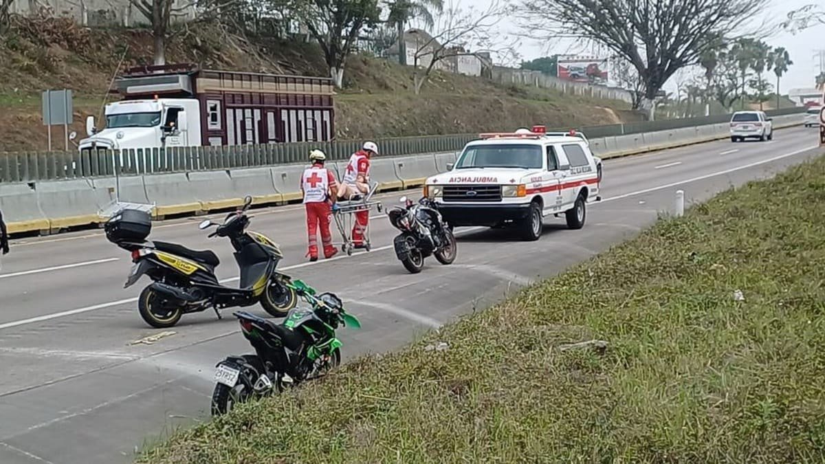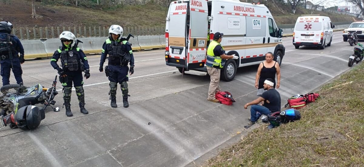 Córdoba, Ver.- Cinco personas lesionadas, movilización de los grupos de auxilio así como también de las autoridades de la Guardia Nacional, es lo que dejó el accidente de tres motociclistas que derraparon al momento de circular sobre el kilómetro 295 de la autopista México-Veracruz, aparentemente por exceso de velocidad y falta de pericia para conducir.