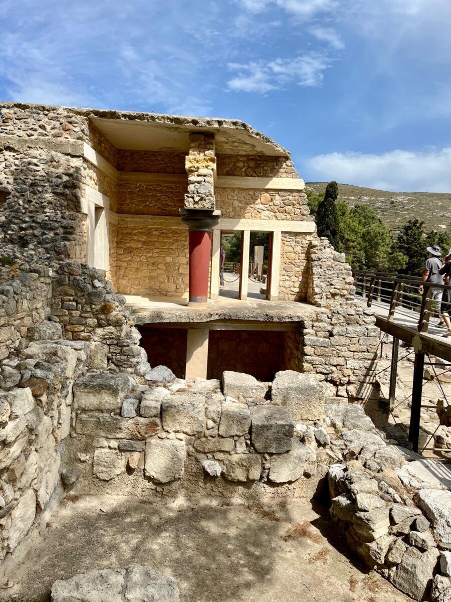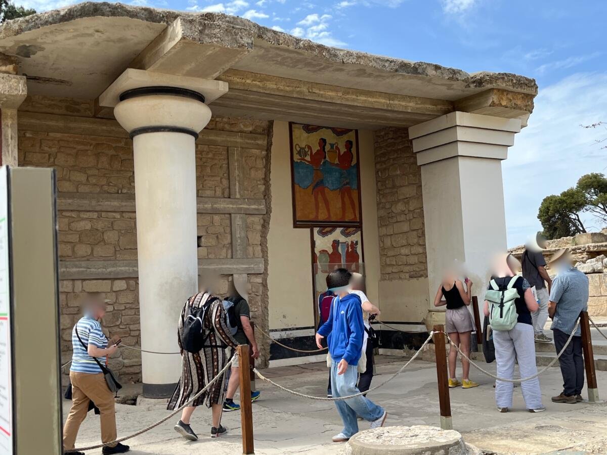 El sitio se encuentra abierto todos los días y el visitante puede apreciar la colorida reconstrucción del palacio con sus diversas salas y columnas. Cnosos cubre varias hectáreas y se puede pasar el día entero en él, a condición de calzar zapatos confortables.