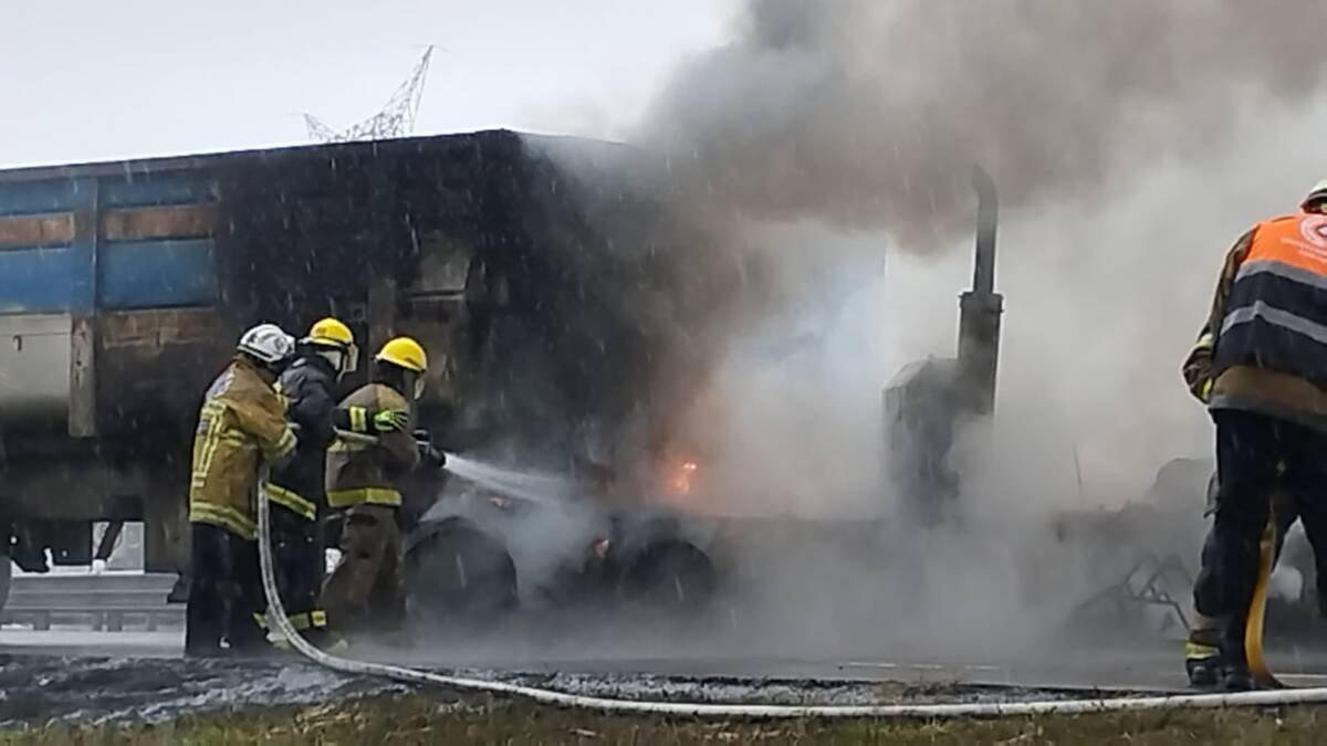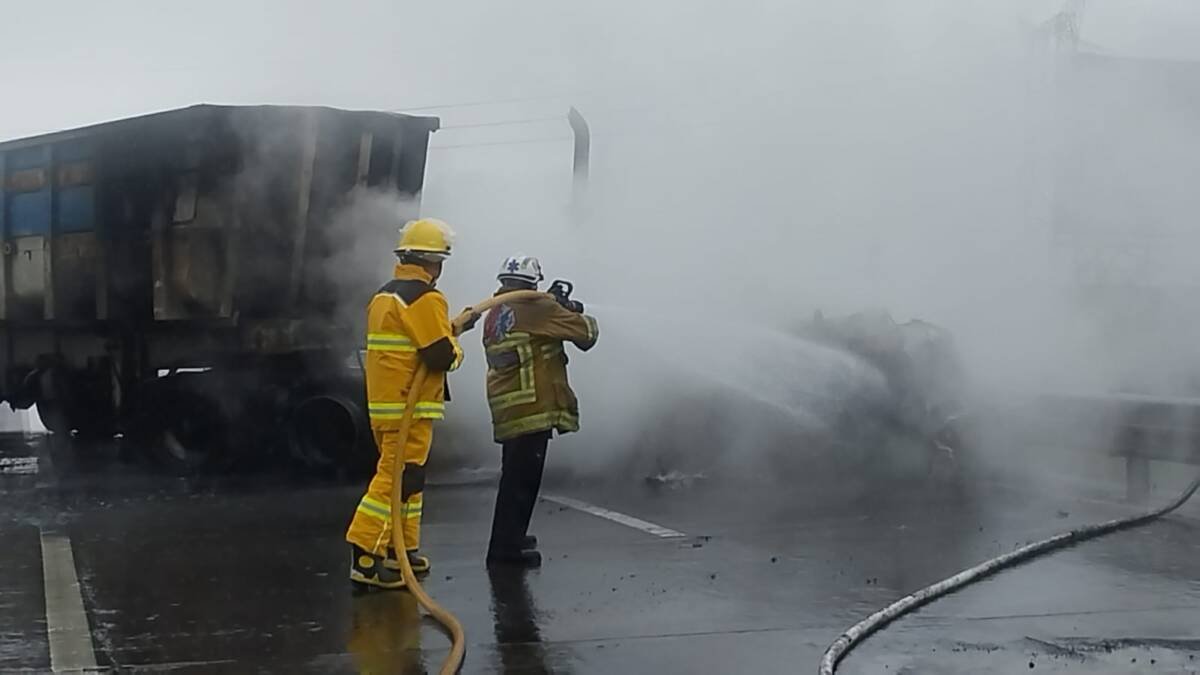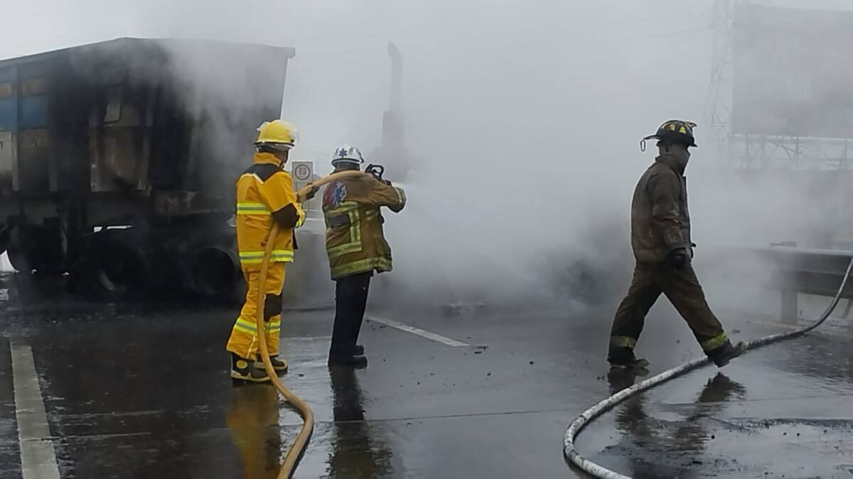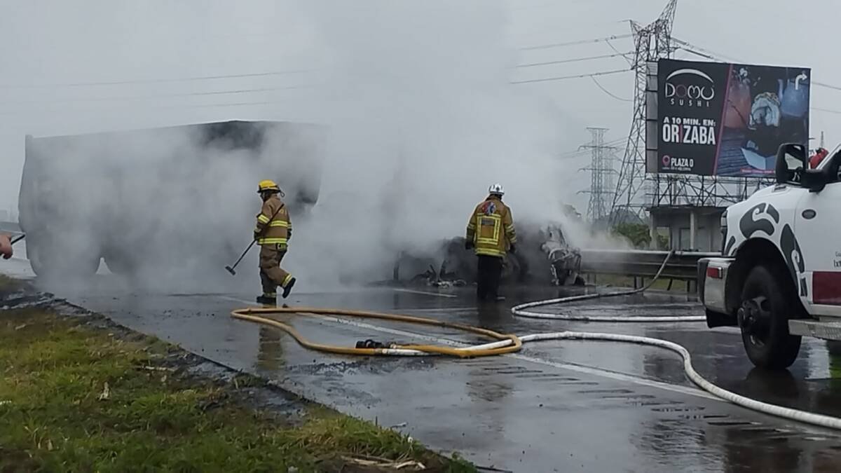 En Fortín, a la altura de los baños de CAPUFE, un tractocamión fue incendiado, generando una columna de humo visible a varios kilómetros y obligando a los automovilistas a extremar precauciones.