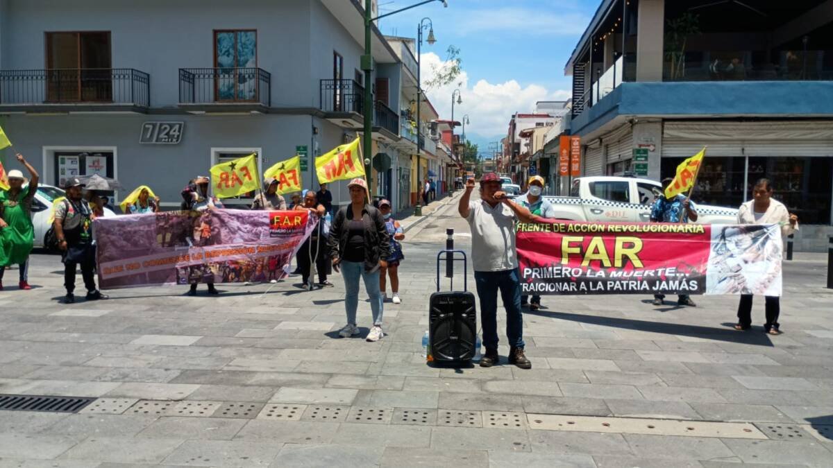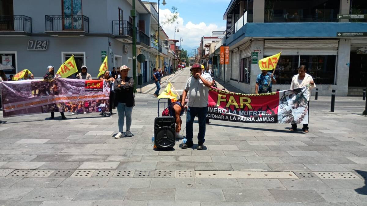 Orizaba, Ver.- Integrantes del Frente de Acción Revolucionaria (FAR) se manifestaron este viernes frente al Palacio Municipal de Orizaba para denunciar presuntos actos de represión y hostigamiento por parte de inspectores de Comercio, los cuales, aseguran, obedecen a instrucciones de la administración del mercado “Melchor Ocampo”.