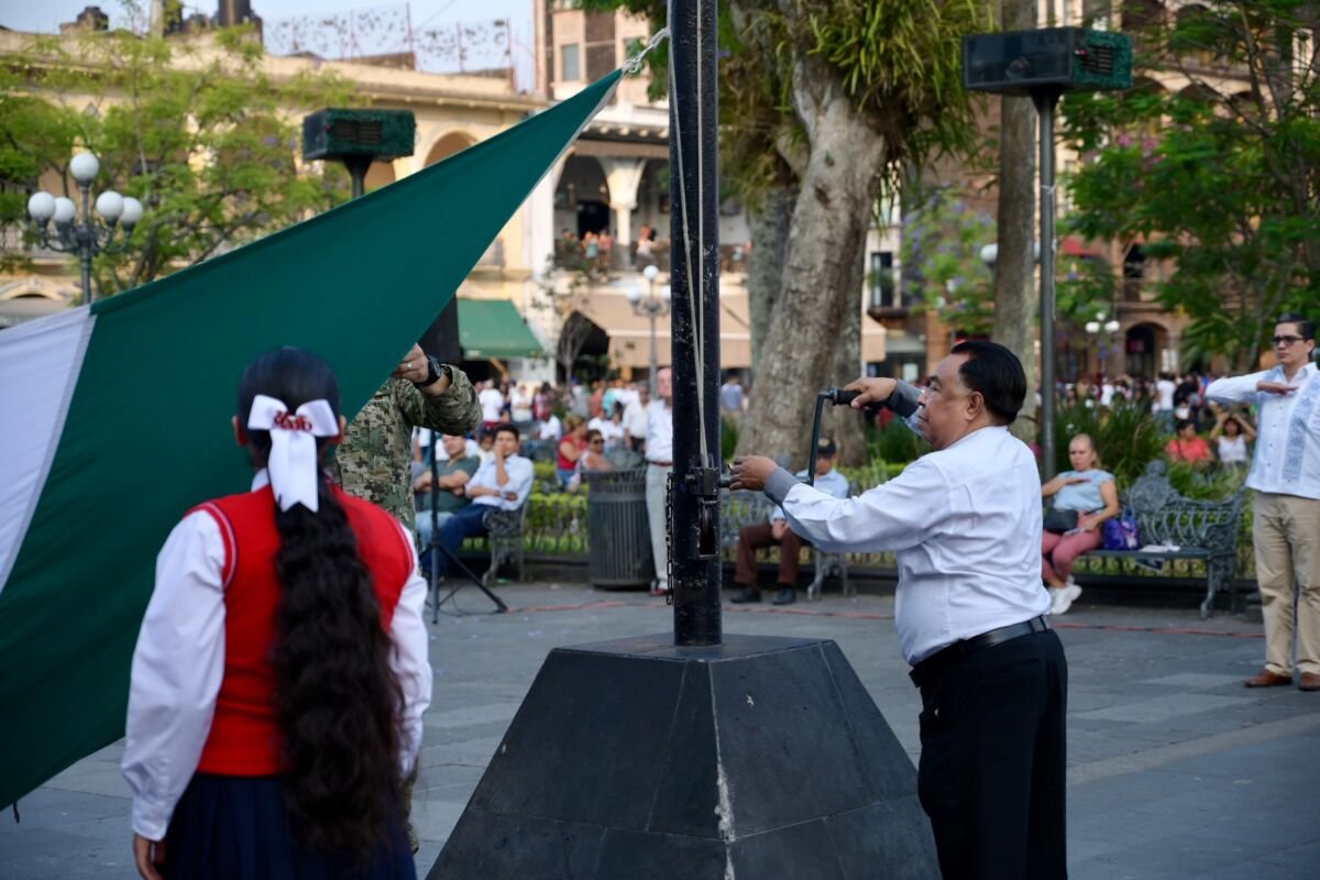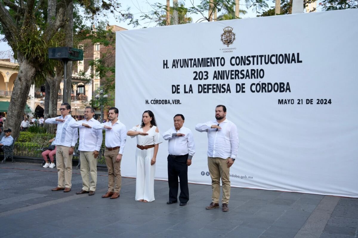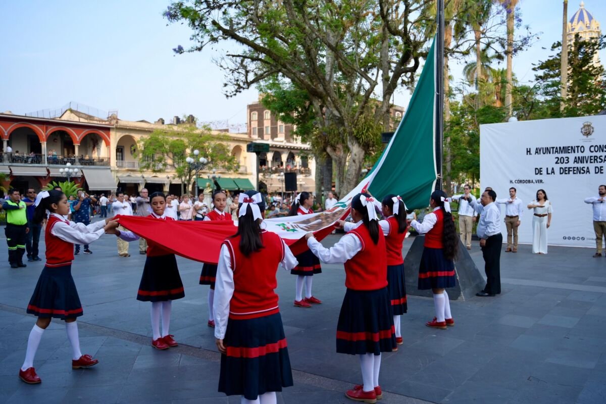 Con el arrío del lábaro patrio por parte de autoridades municipales y estudiantes de la escuela primaria 21 de Mayo en la explanada del palacio municipal, se concluye la conmemoración del 203 Aniversario de la Defensa de Córdoba.