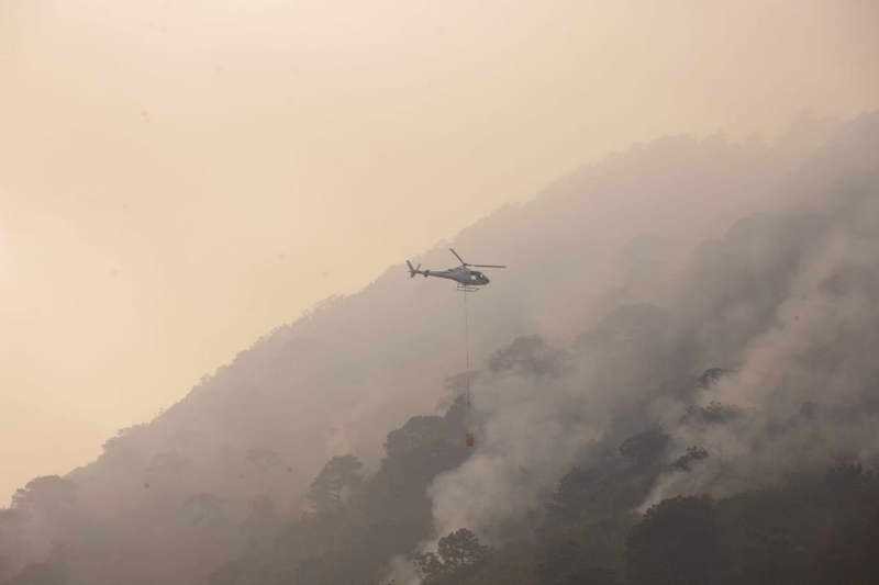 Con helicóptero trabajan para sofocar incendio forestal en Tlilapan