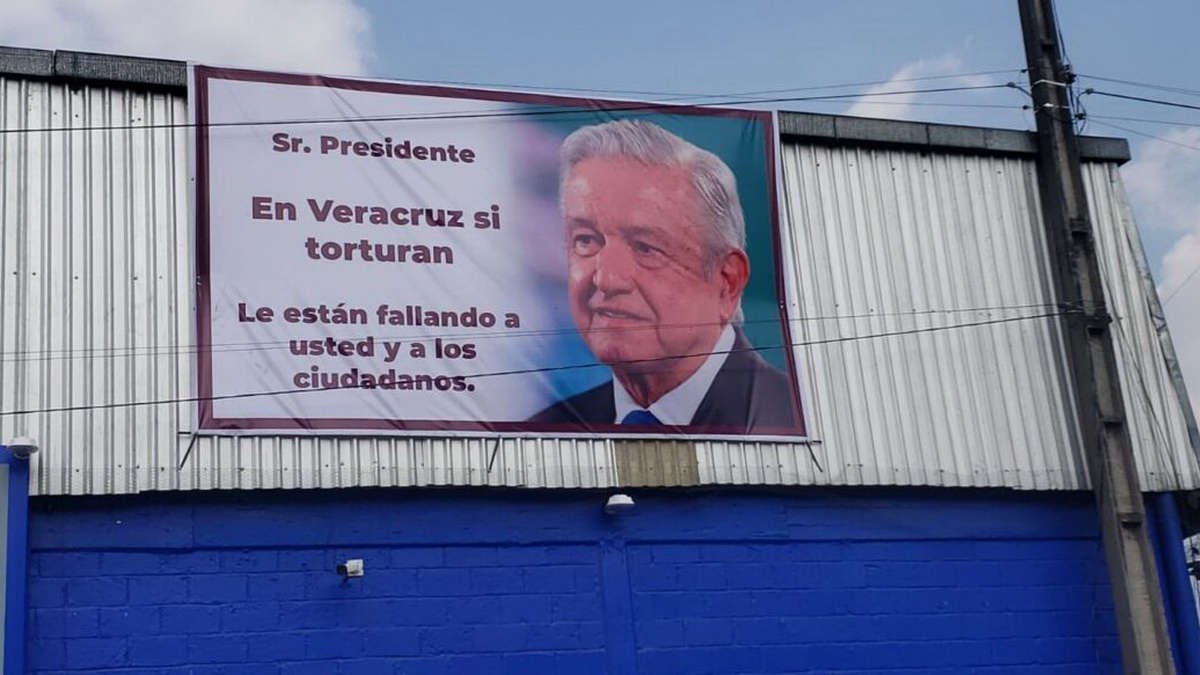 En las lonas colocadas exponen: “Desde el gobierno de la República han manifestado reiteradamente que no se permitiría la tortura. Han manifestado el respeto irrestricto a los derechos humanos.