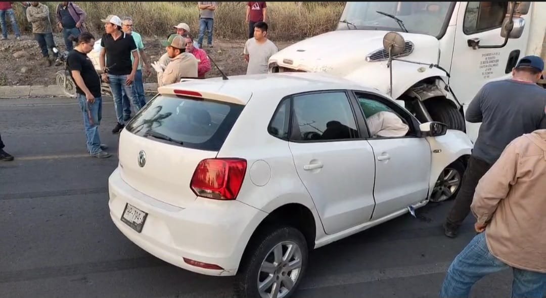 Paso del Macho, Ver.- Un hombre que conducía un automóvil sufrió severas heridas al quedar prensado luego de ser impactado por un camión de carga en la entrada a la cabecera municipal de este municipio.