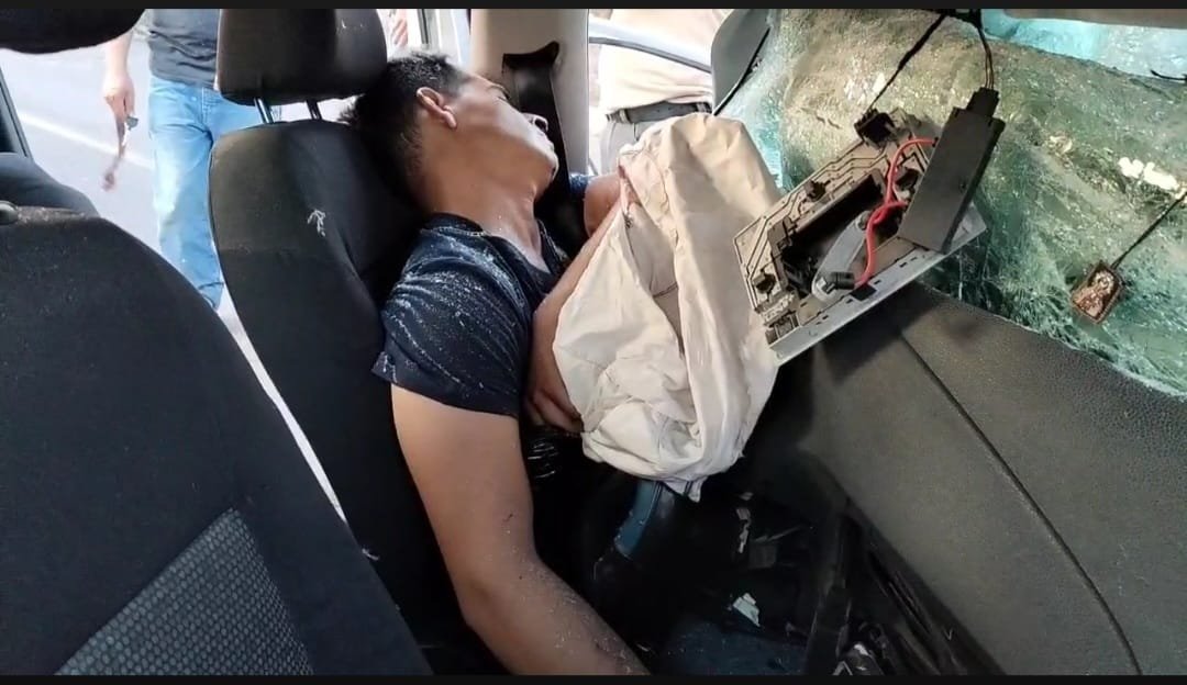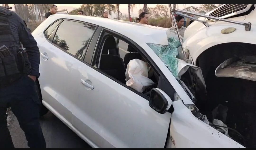El herido conducía un automóvil VW Polo color blanco con placas de circulación YHP 794ª el cual quedó totalmente destrozado del frente.