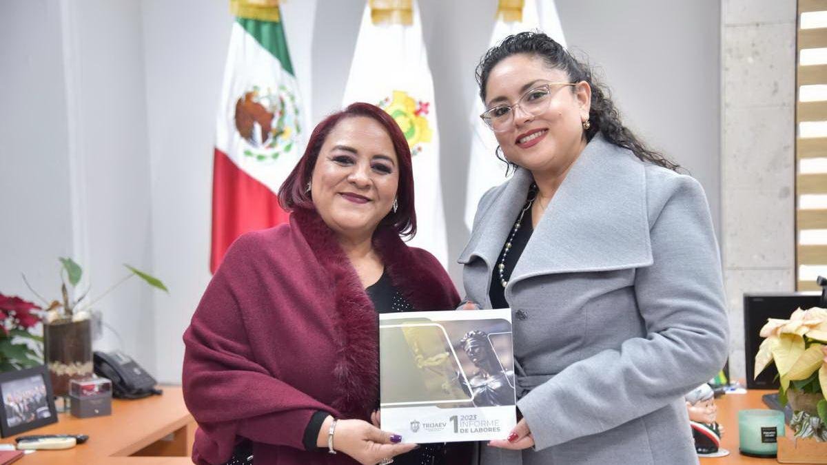 La presidenta de la Mesa Directiva de la LXVI Legislatura, diputada Adriana Esther Martínez Sánchez, recibió de la presidenta del Tribunal de Justicia Administrativa del Estado de Veracruz (TRIJAEV), magistrada Leticia Aguilar Jiménez, el primer Informe anual de este organismo autónomo, en cumplimiento con lo establecido en el párrafo segundo del Artículo 67 de la Constitución Política del Estado de Veracruz.