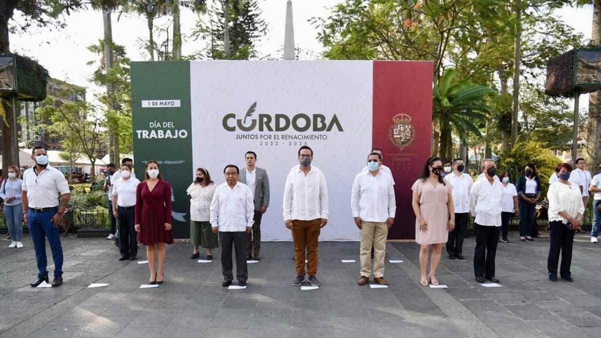 Córdoba, Ver., (1 de mayo de 2022).- Con un acto cívico en la explanada del parque 21 de Mayo, autoridades municipales e integrantes de los sindicatos al servicio del Ayuntamiento conmemoraron el 136 Aniversario del Día del Trabajo.