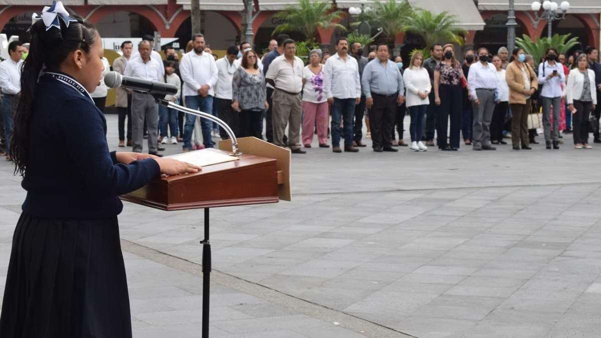 Con la presencia de la regidora décima María del Carmen Aguilar Mendoza y a Regidora tercera, Georgina Aguilar Sánchez, quien fue la encargada de izar la Bandera a toda asta, recibiendo el Lábaro patrio de manos de los alumnos de la primaria Francisco I. Madero, a cargo de la profesora Zoila Baltazar Herrera, directora del plantel.