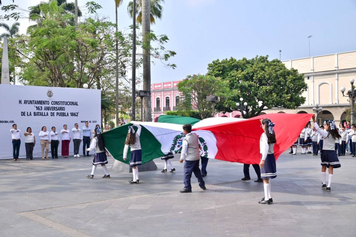 Córdoba, Ver.- Esta mañana, autoridades municipales, estudiantes de la Escuela Primaria 5 de mayo y padres de familia llevaron a cabo el acto cívico por el 163 aniversario de la Batalla de Puebla de 1862.