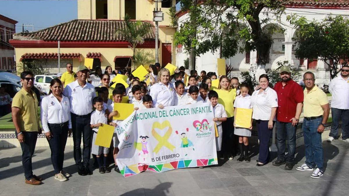 Alvarado, Ver. – La presidenta municipal Lizzette Alvarez Vera y el cabildo se sumaron al acto Conmemorativo del Día Internacional de la Lucha contra el Cáncer Infantil celebrado en la Plaza Cívica “Héroes de Sotavento” de la Cabecera Municipal. La edil sostuvo ante los presentes que El cáncer infantil, es una terrible enfermedad que afecta cada año a más de 300 mil niños de todo el mundo, por lo que representa una de las principales causas de muerte de este sector de la población.
