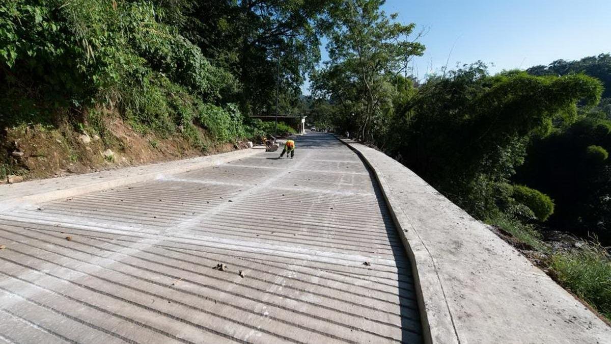 Los trabajos dan continuidad con el colado de pavimentación de concreto hidráulico, mientras que se cuentan con banquetas, guarniciones, muro de contención, traga tormentas, y la instalación de 15 luminarias con tecnología led, lo que prevé este mes se encuentren finalizadas las acciones implementadas en esta obra.