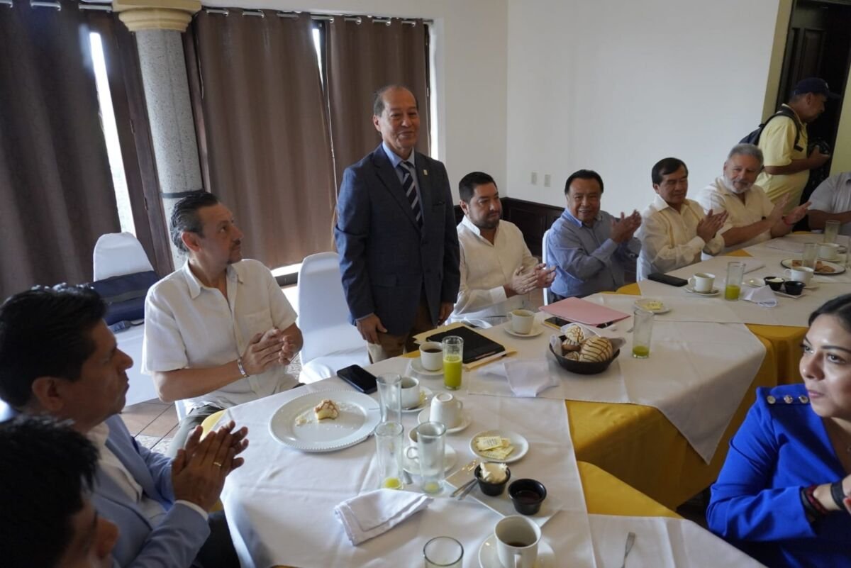 En un desayuno conferencia en la que asistió el magistrado Rolando Javier García Martínez, del Tribunal Federal de Justicia Administrativa y quien sustentó la ponencia “Criterios Jurisdiccionales en torno a los CFDI” también estuvo presente la primera autoridad municipal, Juan Martínez Flores quien tras agradecer la invitación del Colegio conminó a los contadores a caminar juntos para entregar finanzas sanas al ser estos profesionales la columna vertebral de toda administración.