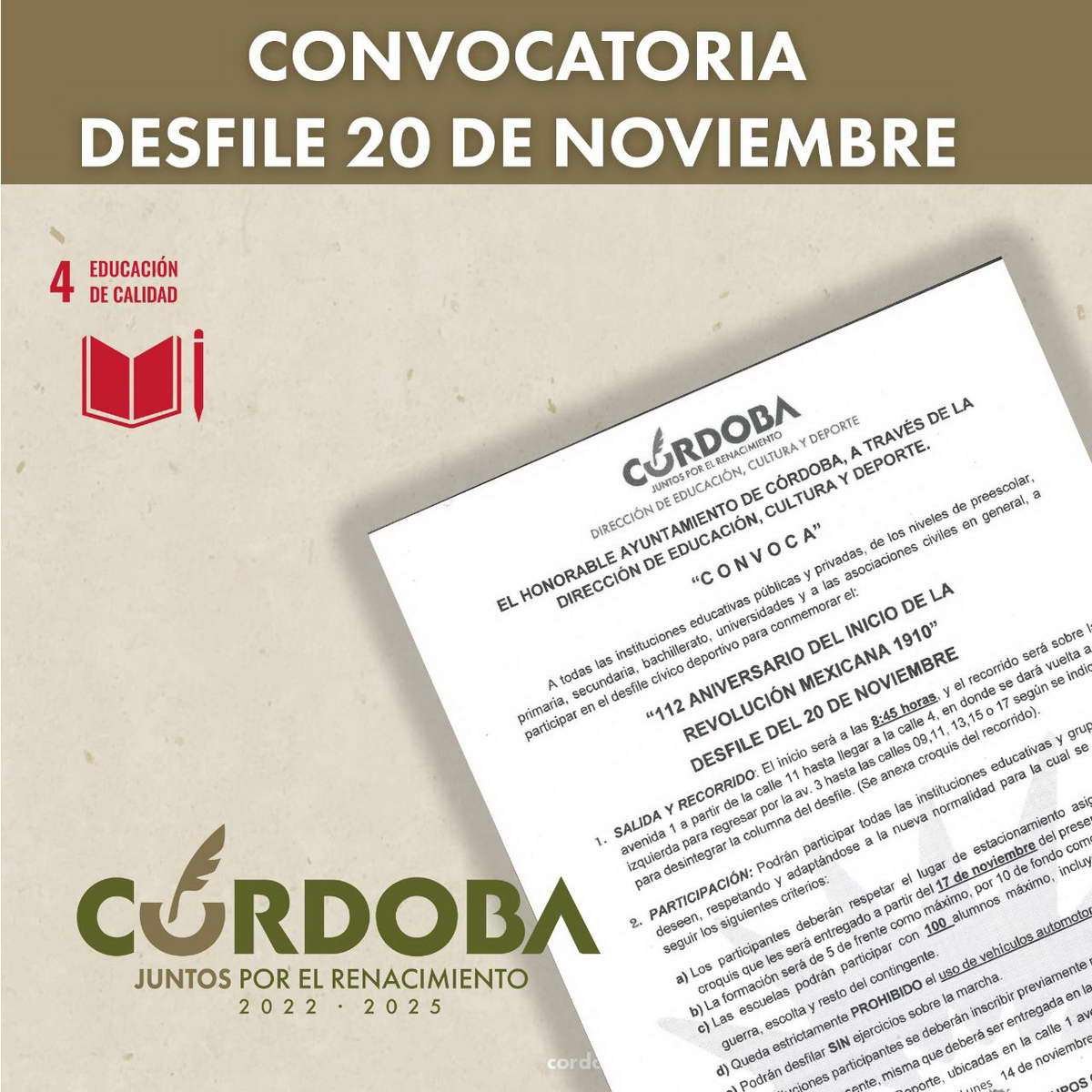 Córdoba, Ver., (09 de noviembre de 2022). – Con motivo del “112 Aniversario del Inicio de la Revolución Mexicana de 1910”, la Dirección de Educación, Cultura y Deporte del Ayuntamiento de Córdoba emitió la convocatoria a planteles educativos, para participar en el desfile del 20 de noviembre, informó el coordinador de Educación, Ángel Etiem Jiménez Castañeda.