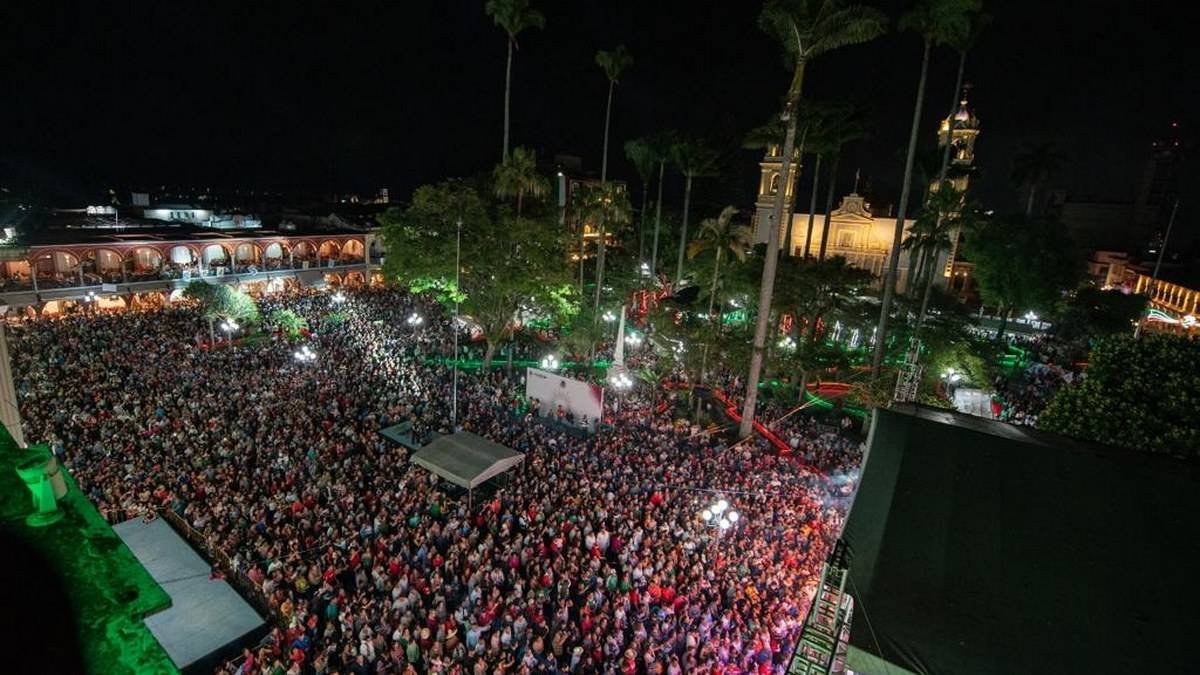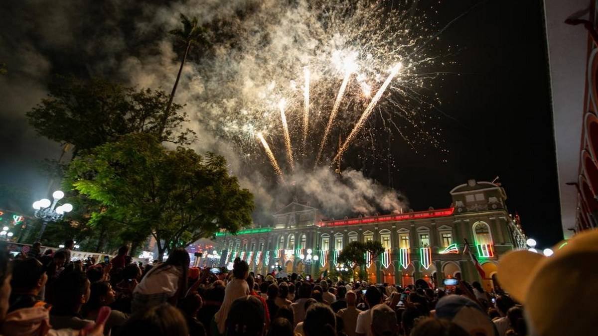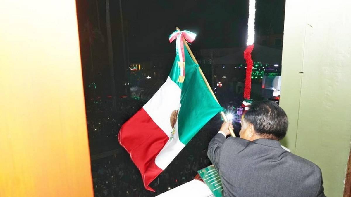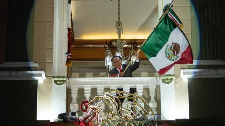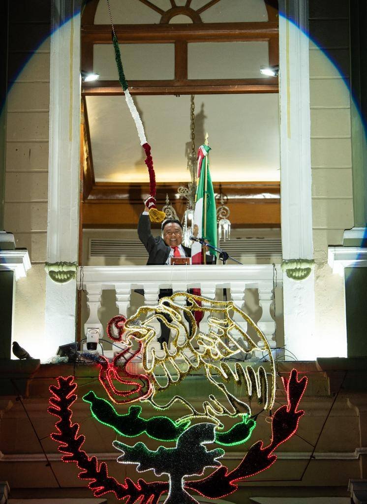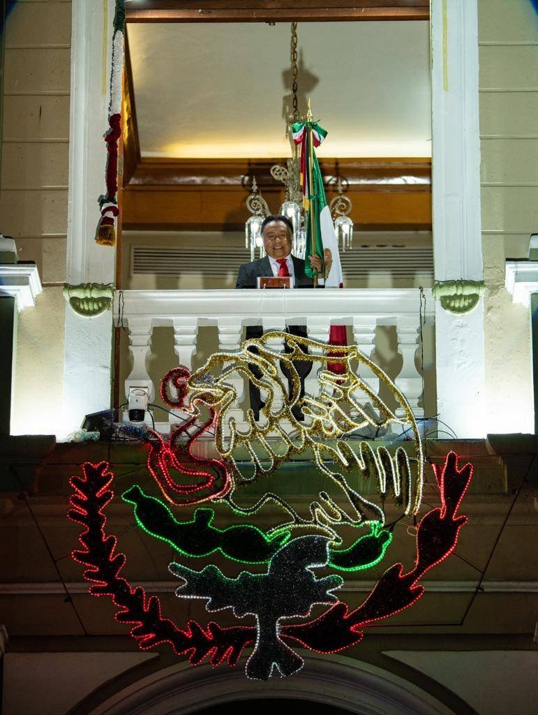 Córdoba, Ver., (16 de septiembre del 2023).- El Presidente Municipal, Juan Martínez Flores, dio su segundo Grito de Independencia desde el Palacio Municipal, acompañado del Secretario de Educación, Zenyazen Escobar García y el cuerpo edilicio, ante miles de cordobeses presentes en la explanada del parque 21 de Mayo.