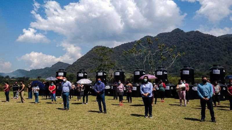 Al recibir su tinaco, Emma Lara Santibáñez de la comunidad San Isidro Palotal destacó: “Ahora voy a poder recolectar mejor el agua, voy a poder almacenar. Con este tinaco salgo muy beneficiada por tener de forma segura e higiénica mi agua”.