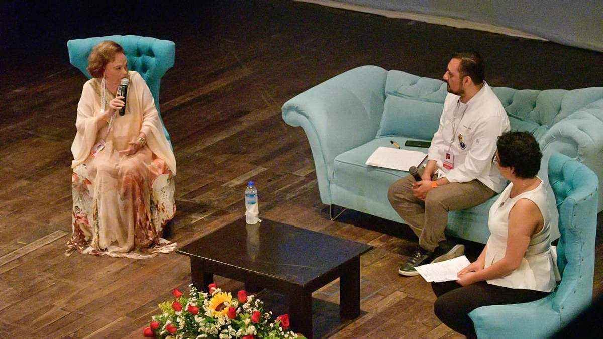 Córdoba, Ver., (25 de agosto de 2022). – La tarde de este jueves, la reconocida chef Susana Palazuelos ofreció una Conferencia Magistral “Turismo de Bodas” en el teatro Pedro Díaz, en donde relató parte de los inicios de su trayectoria en el mundo de la gastronomía, especializándose en banquetes de boda a lo largo de sus 47 años de trayectoria, quien conversó con los chefs Irais Ávila Flores y Javier Cuevas Ferrer del Consejo Gastronómico Veracruzano, esto como parte de los eventos que contemplan el Reborn Fest 2022.