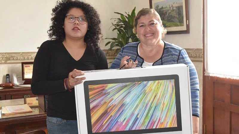 Córdoba, Ver., 18/06/18.- La mañana de este lunes María José Aguirre Huerta, creadora del cartel oficial de la Expo Feria Córdoba 400 Años, recibió de manos de la Presidenta Municipal un reconocimiento por su participación en el concurso para la elaboración de dicho cartel.