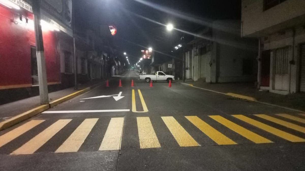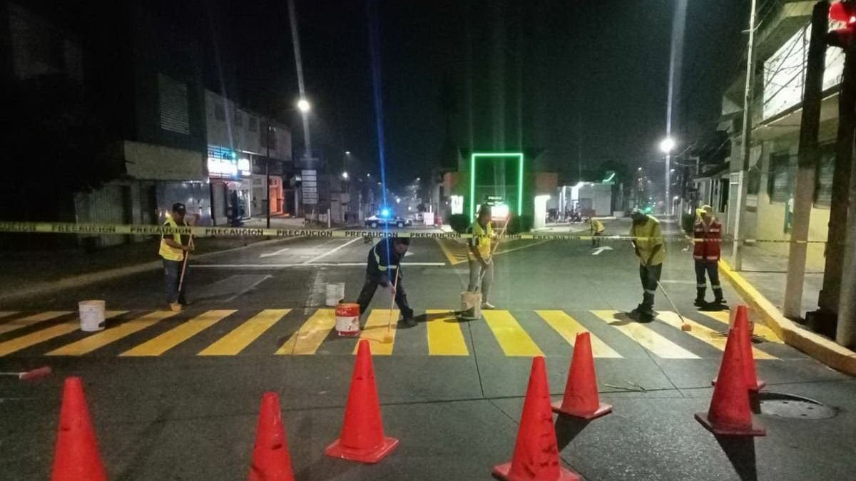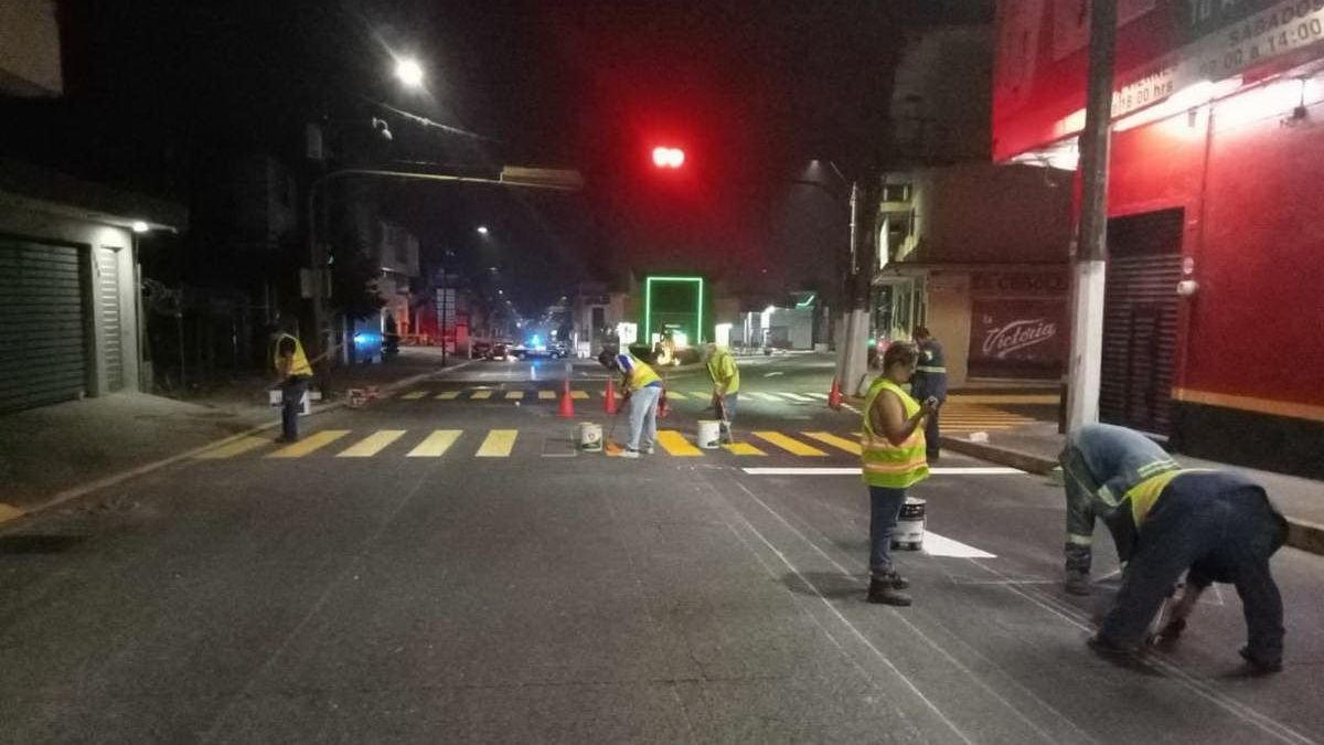 Córdoba, Ver.- Como parte de las acciones del programa de Balizamiento que implementa el Ayuntamiento de Córdoba, para brindar mayor seguridad al peatón y automovilistas, durante la madrugada de este miércoles la cuadrilla del área realizó la señalización de pasos peatonales sobre la avenida 1 y calle 16 de la colonia San José.