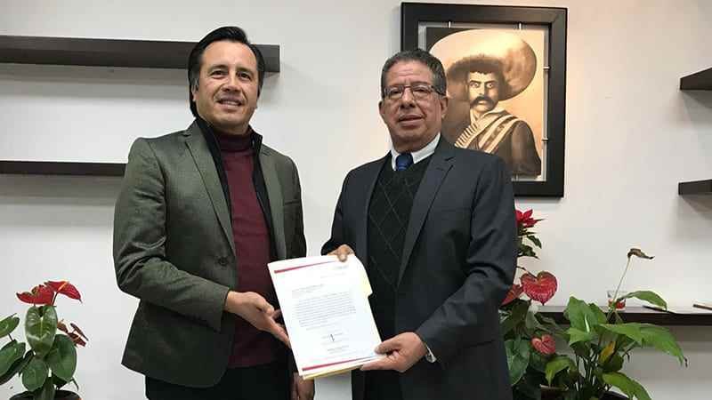 Xalapa, Ver. -Cuitláhuac García Jiménez, gobernador electo del estado entregó la solicitud al presidente de la Mesa Directiva del Congreso, José Manuel Pozos Castros para rendir protesta desde el primer minuto del 1 de diciembre.