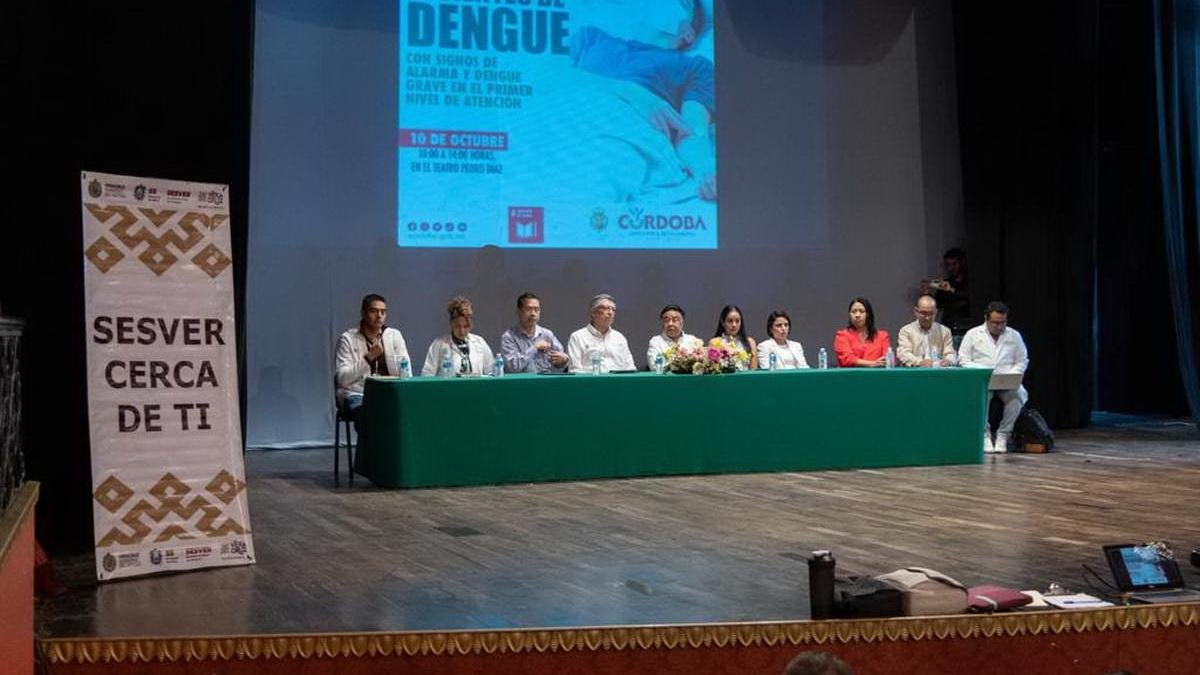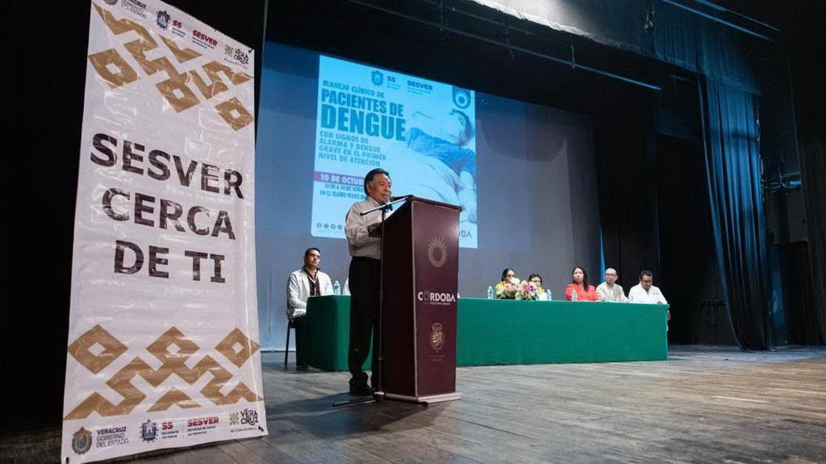 Córdoba, Ver., (10 de octubre de 2023). – Con el fin de reforzar los conocimientos clínicos sobre el manejo del dengue, este martes, la comunidad médica de instituciones de salud pública y privadas fueron capacitados a través de una jornada en temas de actualización para brindar la atención oportuna en “Pacientes con signos de Alarma y Dengue Grave, evento que fue inaugurado por el Presidente Juan Martínez Flores y el Subdirector de Atención de Primer Nivel, Dr. Alberto Moctezuma Vázquez.