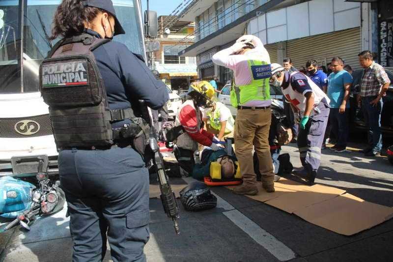 Córdoba, Ver.-Dos motociclistas resultaron heridos al ser impactados por un autobús en el crucero de la avenida 3 y calle 17 esta mañana.