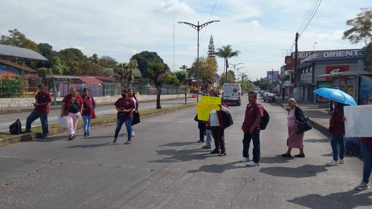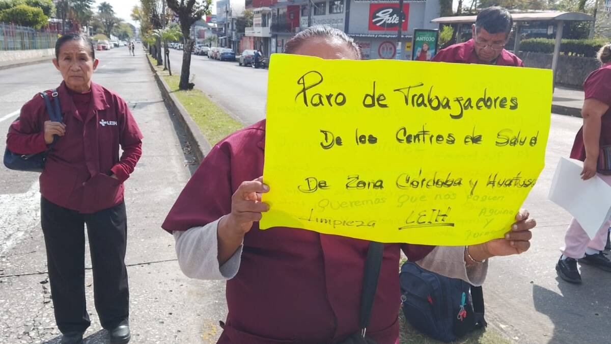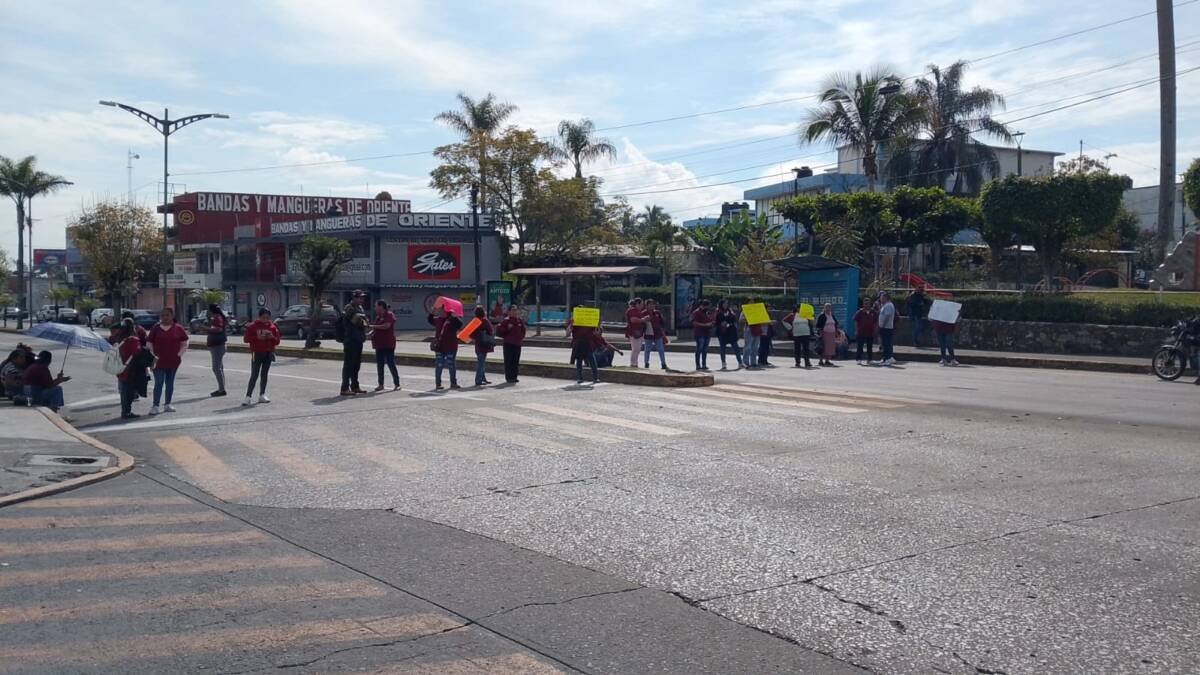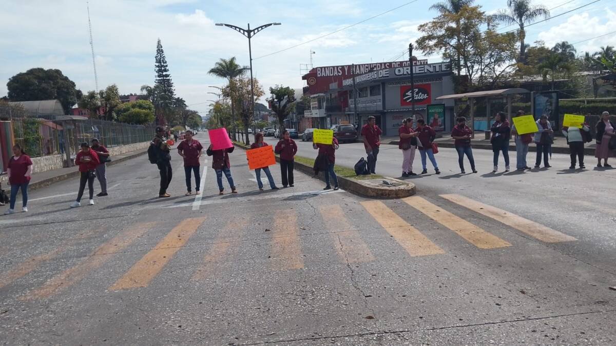 Córdoba, Ver.- Trabajadores de limpieza de la Jurisdicción Sanitaria 6 realizan un bloqueo en la avenida 11 y calle 21 para exigir a las autoridades el pago de su aguinaldo y tres quincenas que les deben.