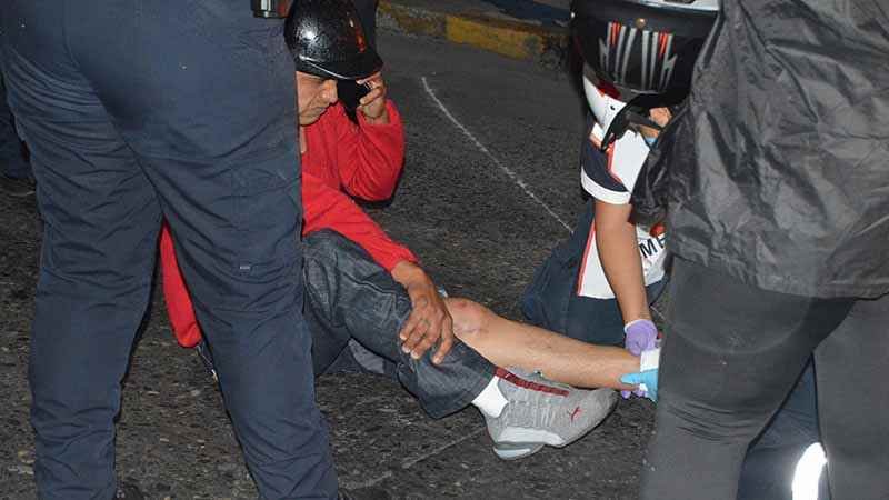 Córdoba, Ver.- Un motociclista resultó con heridas abrasivas al derrapar hace unos minutos en la avenida 7 y calle 5 xsiendo auxiliado por policías estatales y paramédicos de Cruz Roja que lo atendieron y trasladaron al nosocomio para atenderlos de sus heridas.