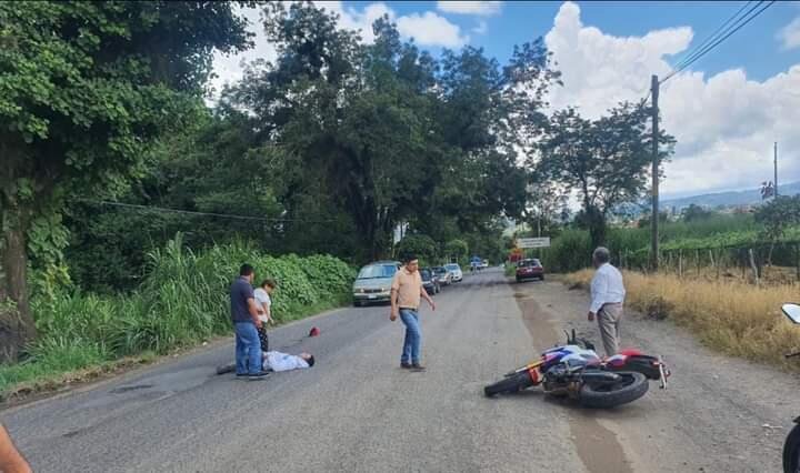 Coscomatepec, Ver.- Con múltiples golpes resultó la tarde de este domingo un motociclista que derrapó al momento de circular sobre la carretera federal Fortín-Conejos, a la altura del lugar conocido como Los Carriles.