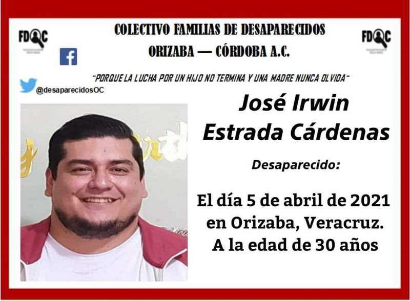 Se trata del litigante José Irwin Estrada Cárdenas de aproximadamente 30 años de edad, en donde el Colectivo de Familias de Desaparecidos Orizaba-Córdoba A.C, ya boletino su fotografía.