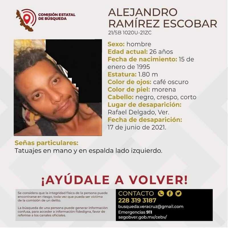 Se trata de Alejandro Ramírez Escobar de aproximadamente 26 años de edad, del que hasta el momento se desconoce su paradero, sus familiares temen que algo malo pudiera pasarle.