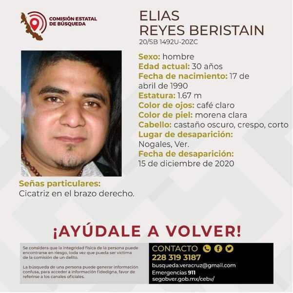Se trata de Elías Reyes Beristain de aproximadamente 30 años de edad, por lo que sus familiares solicitaron a la ciudadanía su apoyo, con el fin que sea localizado.