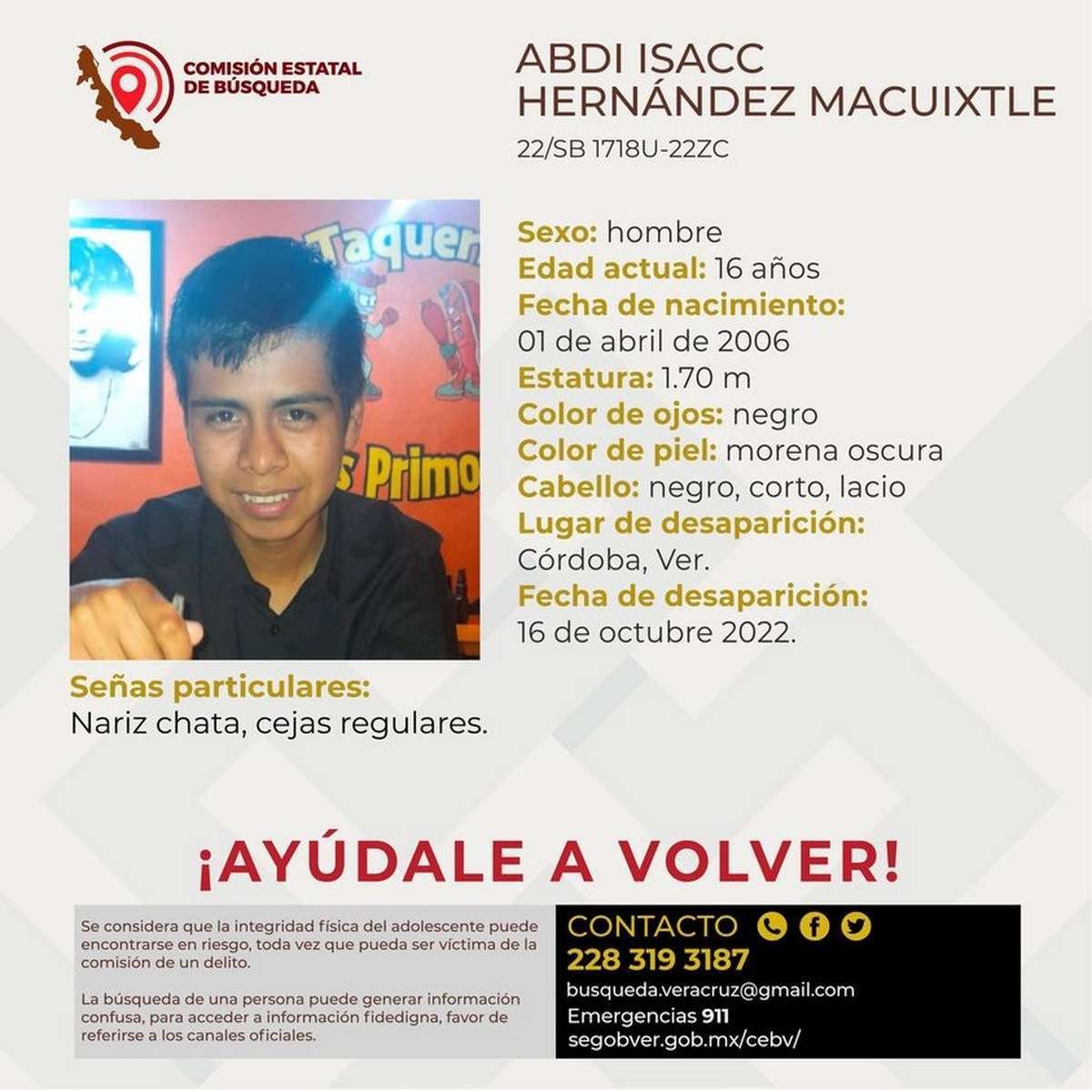 Se trata de los jóvenes Addi Isaac Hernández Machuixtle quien desapareció el 16 de octubre. El menor tiene 16 años  y mide 1.70 de estatura.