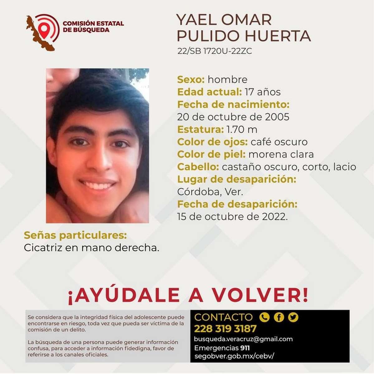 Yael Omar tiene como característica una cicatriz en la mano derecha, mide 1.70 de estatura, tiene ojos cafés claros y es de tez morena. Pidieron que cualquier información para dar con su paradero sea aportada a autoridades policiacas o al 911.