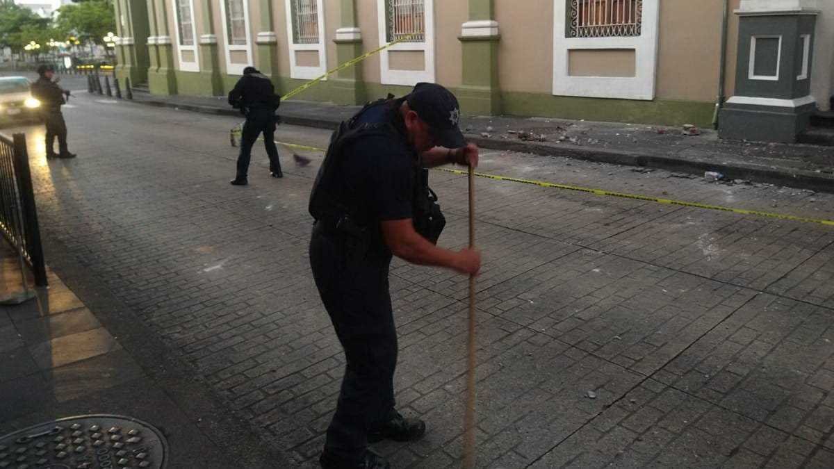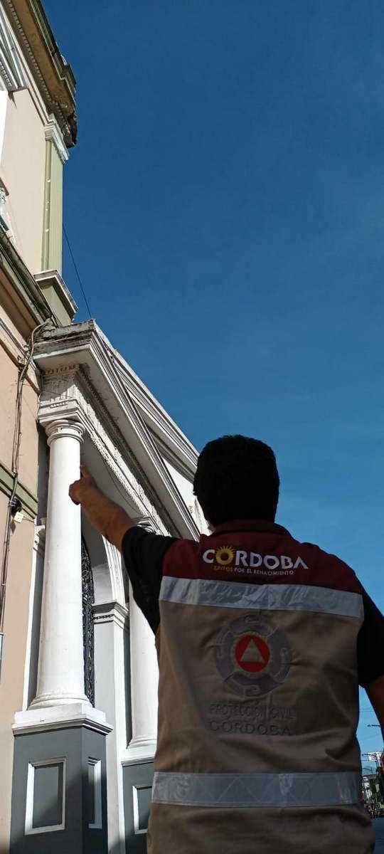 Para salvaguardar la integridad de los transeúntes, la Unidad Municipal de Protección Civil decidió acordonar el paso peatonal sobre la avenida 1 entre calles 1 y 2, hasta que el área correspondiente revise estructuralmente dicha zona del inmueble.