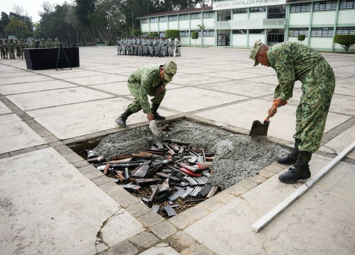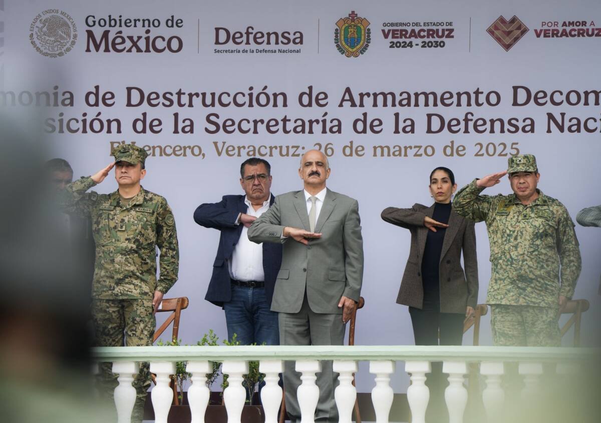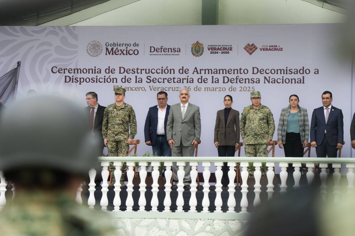 Emiliano Zapata, Ver., miércoles 26 de marzo de 2025.- En el marco de la colaboración entre el Gobierno de México y de Veracruz para fortalecer la seguridad y la pacificación del estado, se llevó a cabo la Destrucción de Armamento Decomisado, en la 26/a Zona Militar de El Lencero.