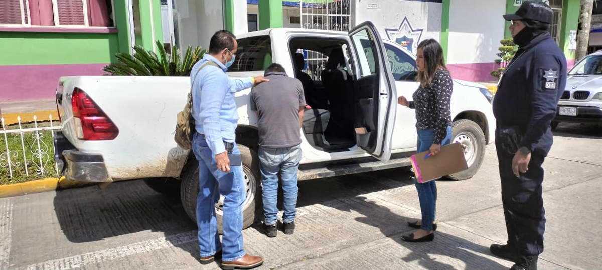 Santa Ana Atzacan Ver.-Elementos de la Policía Municipal detuvieron a un mototaxista, al revisar sus pertenencias le hallaron dos teléfonos celulares, uno de ellos propiedad de la hoy finada, Araceli Morales Antonio debido a ello fue entregado a detectives Policía Ministerial acreditable para ser interrogado, pero este los golpeó por lo que fue sometido y arrestado.