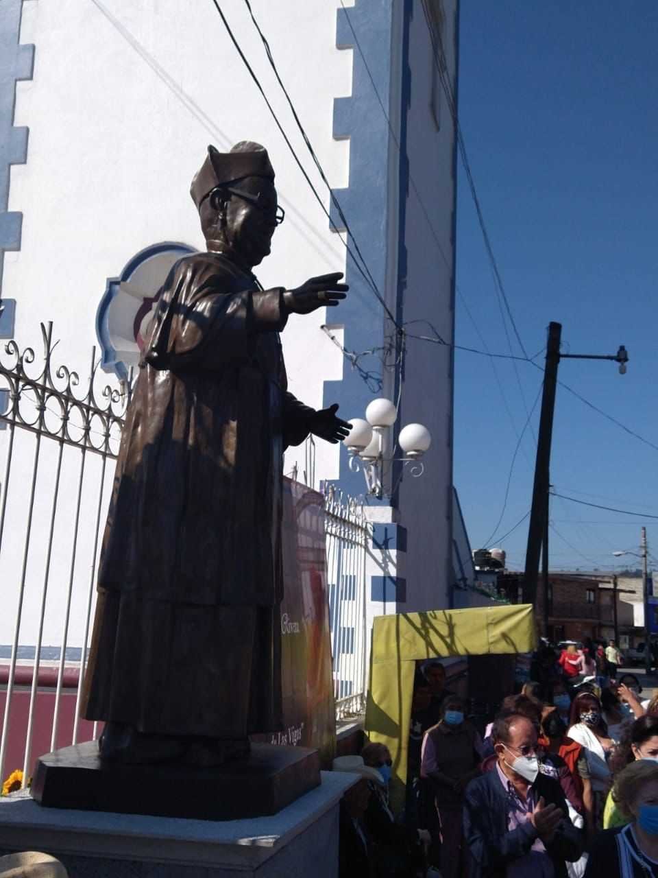 El monumento de bronce quedó en las afueras del atrio, hacia el parque del Municipio, donde está el ilustre Rafael Ramírez, y el otro monumento de fibra de vidrio fue colocado en la capilla de Dolores, donde fue bautizado el Cardenal Sergio Obeso Rivera.