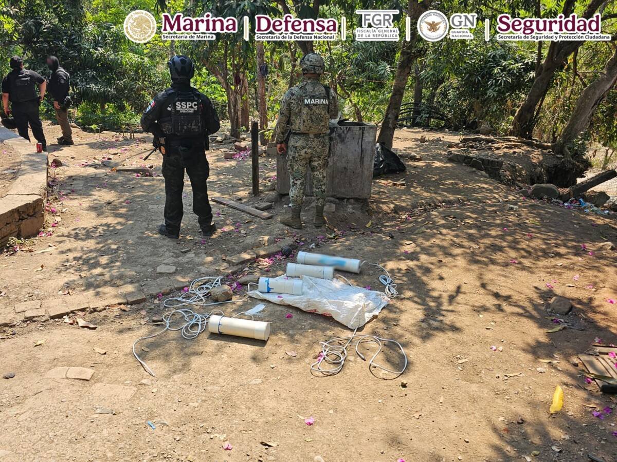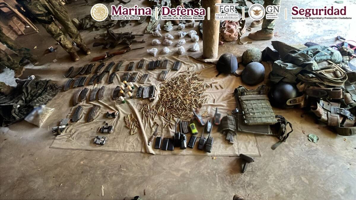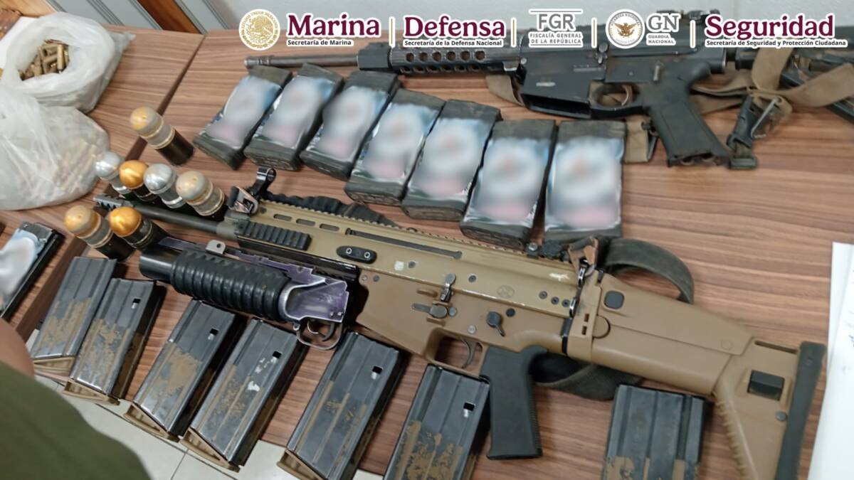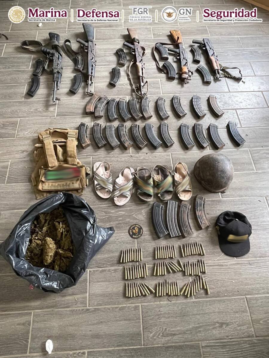 Derivado de lo anterior, personal naval en coordinación con dependencias del Gabinete de Seguridad ubicaron el lugar, donde hallaron armamento y equipo táctico. Cabe señalar que en este operativo hubo una fuerte agresión al personal de la Secretaría de Marina con armas de fuego de uso exclusivo de las fuerzas armadas por parte de los presuntos delincuentes a las fuerzas de seguridad, resultando necesario el uso de la fuerza en apego a la normatividad vigente.