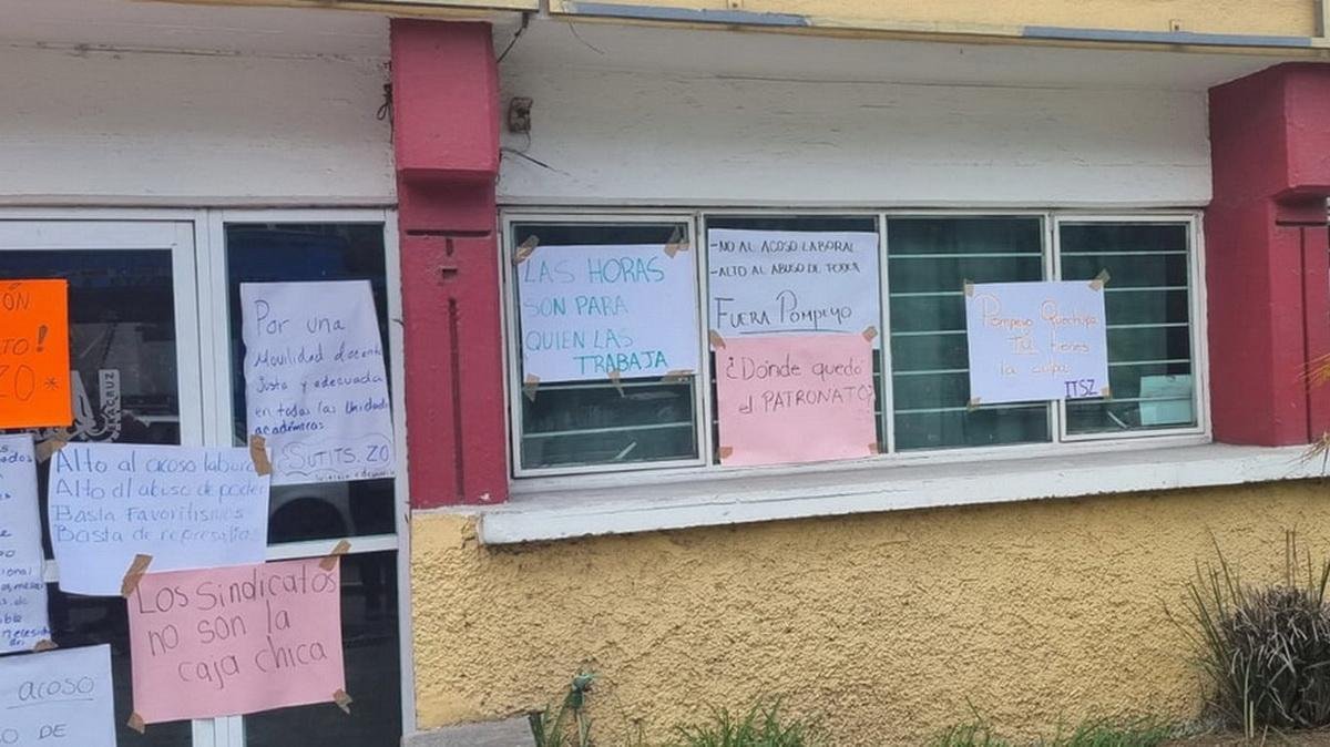 Zongolica, Ver. – Con carteles y letreros que colocaron en las siete sedes, agremiados del Sindicato Único de Trabajadores del Instituto Tecnológico de Zongolica (Sutitzo) y del Sindicato del Instituto Tecnológico Superior de Zongolica (Sitszo) denunciaron una serie de irregularidades por parte del director de esta casa de estudios, Pompeyo Quechulpa Pérez.