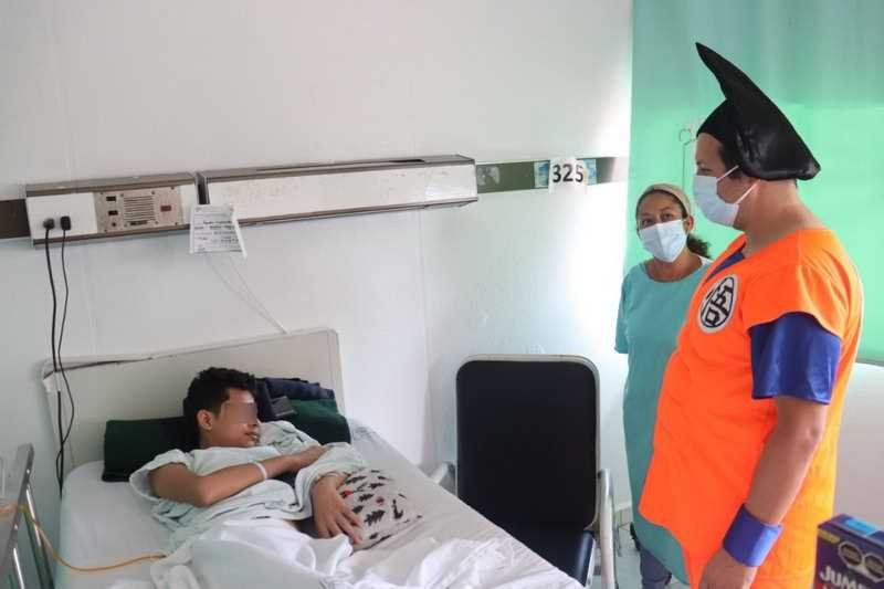 Además del gran trato humano, el doctor Cabrera siempre busca sacarles sonrisas a todos sus pacientes que pasan momentos difíciles, por lo que algunas veces llega al hospital caracterizado de diversos personajes, quienes, está seguro, ayudan a una mejor convivencia.
