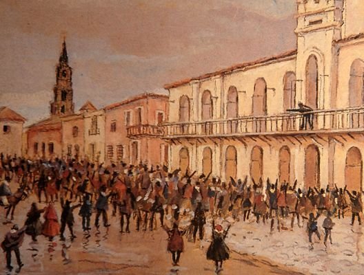 Revolución de mayo 1810 en Argentina : la población de Buenos Aires se levanta contra el virrey español Baltasar Hidalgo de Cisneros.