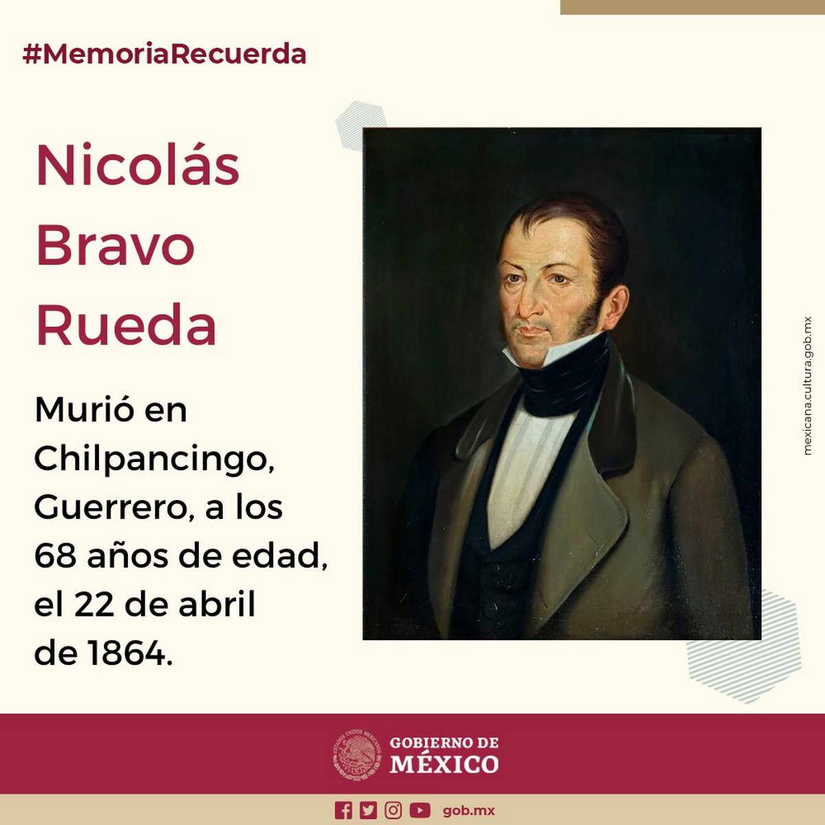 26 de octubre de 1842 : Se hace cargo de la presidencia el general Nicolás Bravo, ante la renuncia de Antonio López de Santa Anna.