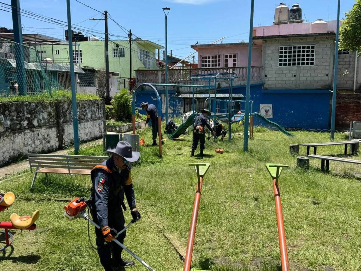 Tras concluir el patrullaje, los integrantes de la corporación se trasladaron a la unidad habitacional San Román, donde llevaron a cabo labores de limpieza y chapeo de maleza en un parque público, en beneficio de las familias que utilizan este espacio recreativo.