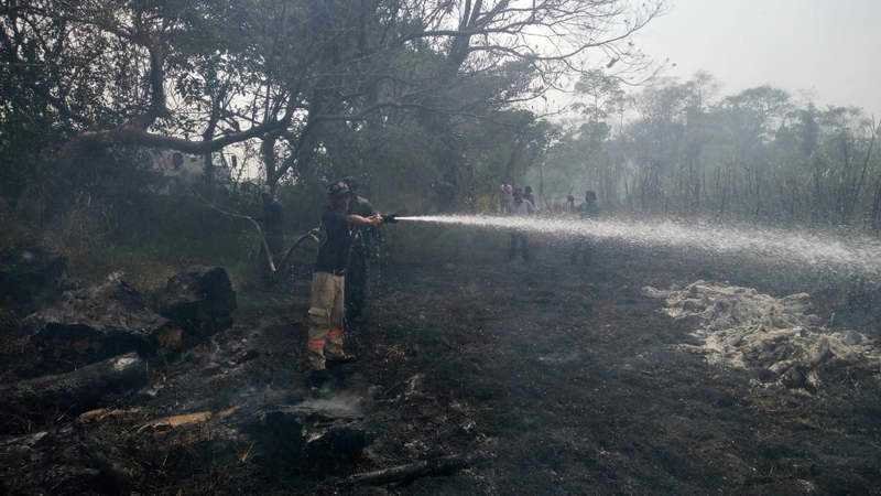 El mismo domingo ambos grupos apagaron un incendio que alcanzó pastizal cuando personas desconocidas quemaban en una gran fogata, bobinas eléctricas para obtener alambre de cobre a un costado de la unidad habitacional Las Arboledas.