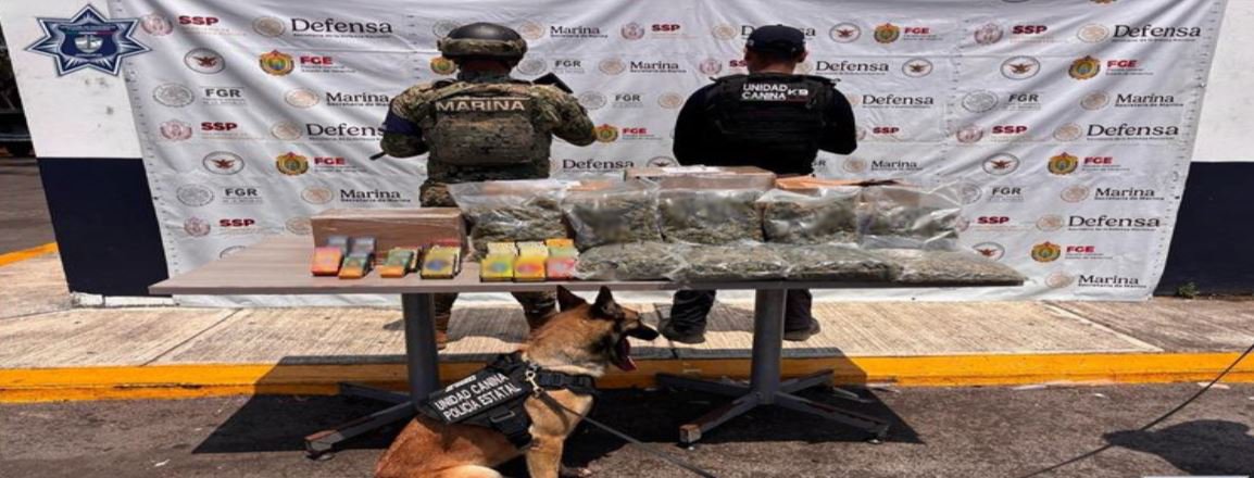 -En Veracruz, elementos de Semar y Secretaría de Seguridad Pública (SSP), durante la inspección a una empresa paquetería aseguraron 4.634 kilogramos de marihuana y 32 vapeadores con tetrahidrocannabinol.