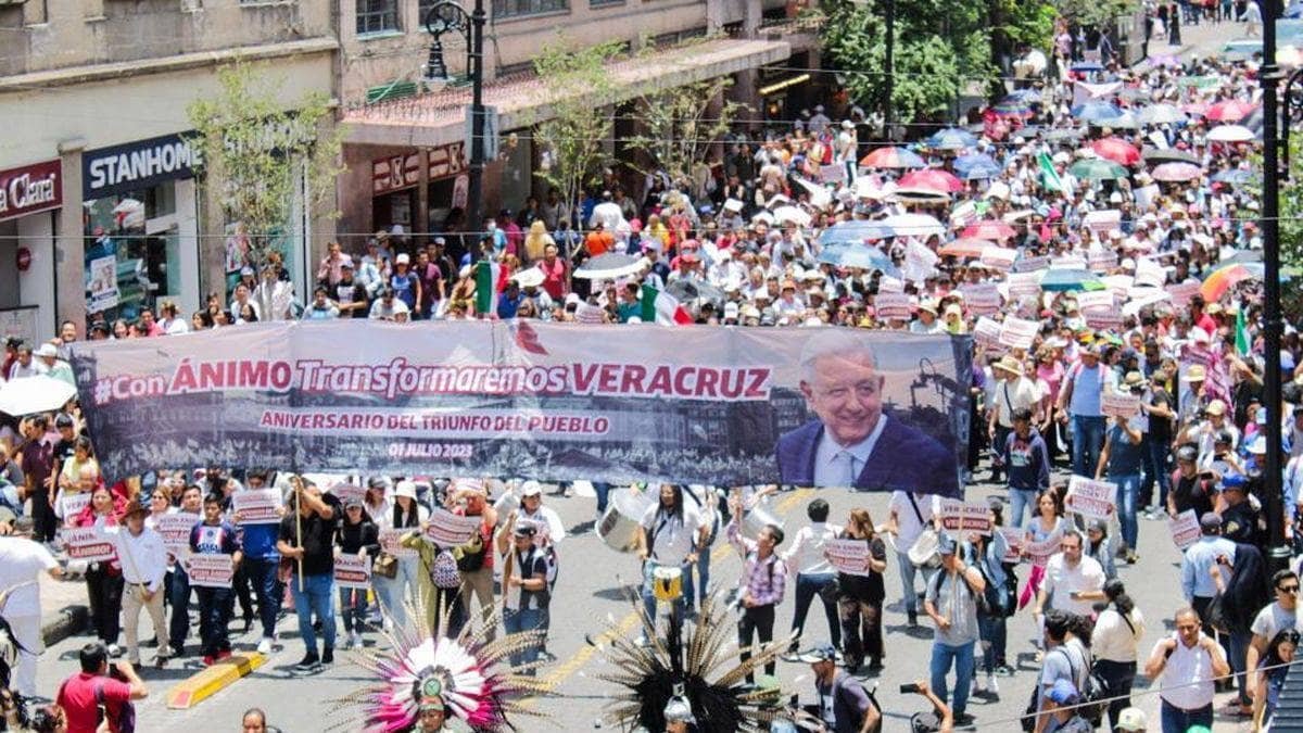 CIUDAD DE MÉXICO.- En la fiesta más importante de la democracia, miles de ciudadanos veracruzanos, encabezados por Manuel Huerta, participan en la conmemoración del Triunfo Democrático para la Transformación de México desde el Zócalo capitalino.